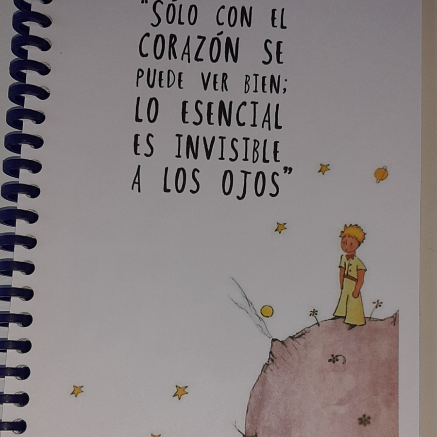 Tapa El Principito con frase, si buscas otro motivo, consúltame!